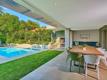 Off the kitchen a perfect room for a study, with a built in book case and seating or use as a den. A separate family room with quartz server, sink and pizza oven opens through stack back doors to the covered entertainers patio with braai, built-in seating overlooking a solar heated pool. Fun firepit set in a mature treed garden with automatic irrigation and garden lights so extremely romantic with a lawn for easy family gatherings and soccer.